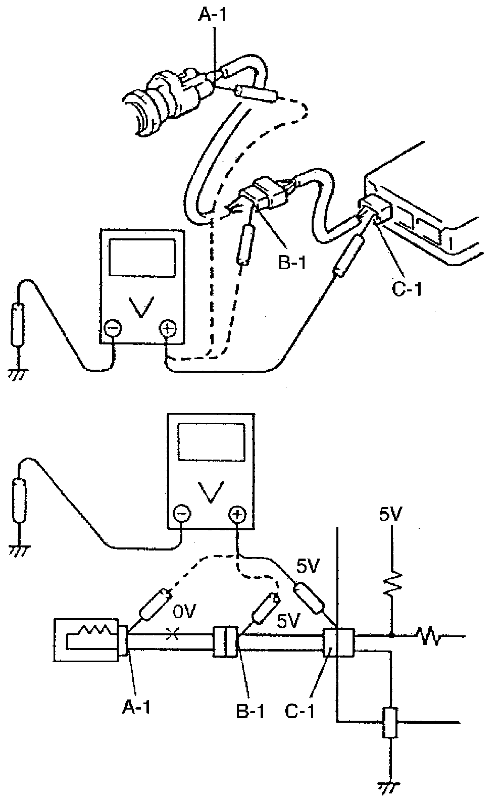 "C-1" and body ground: Approx. 5 V