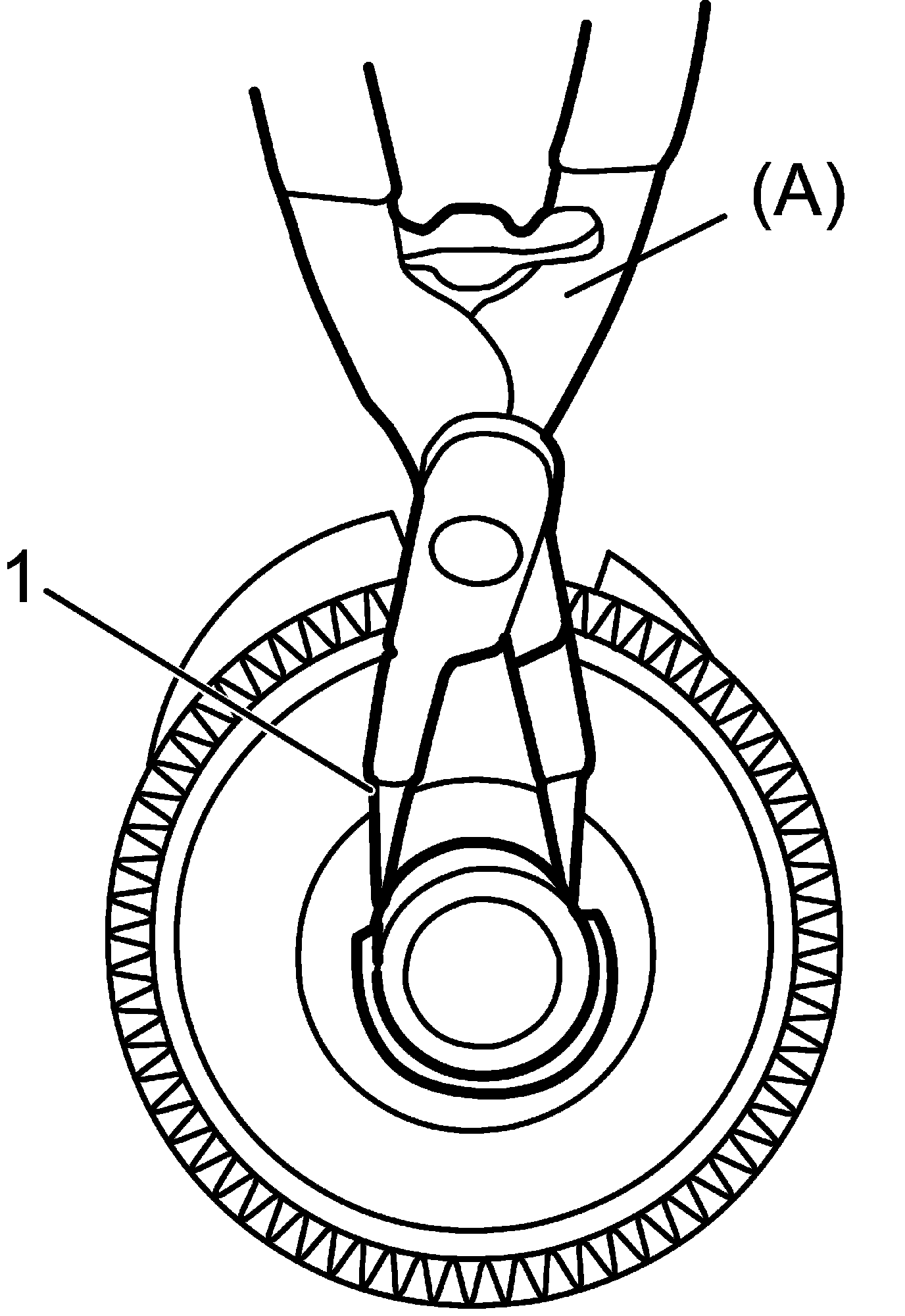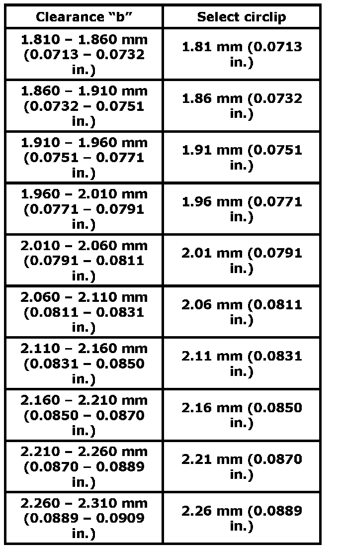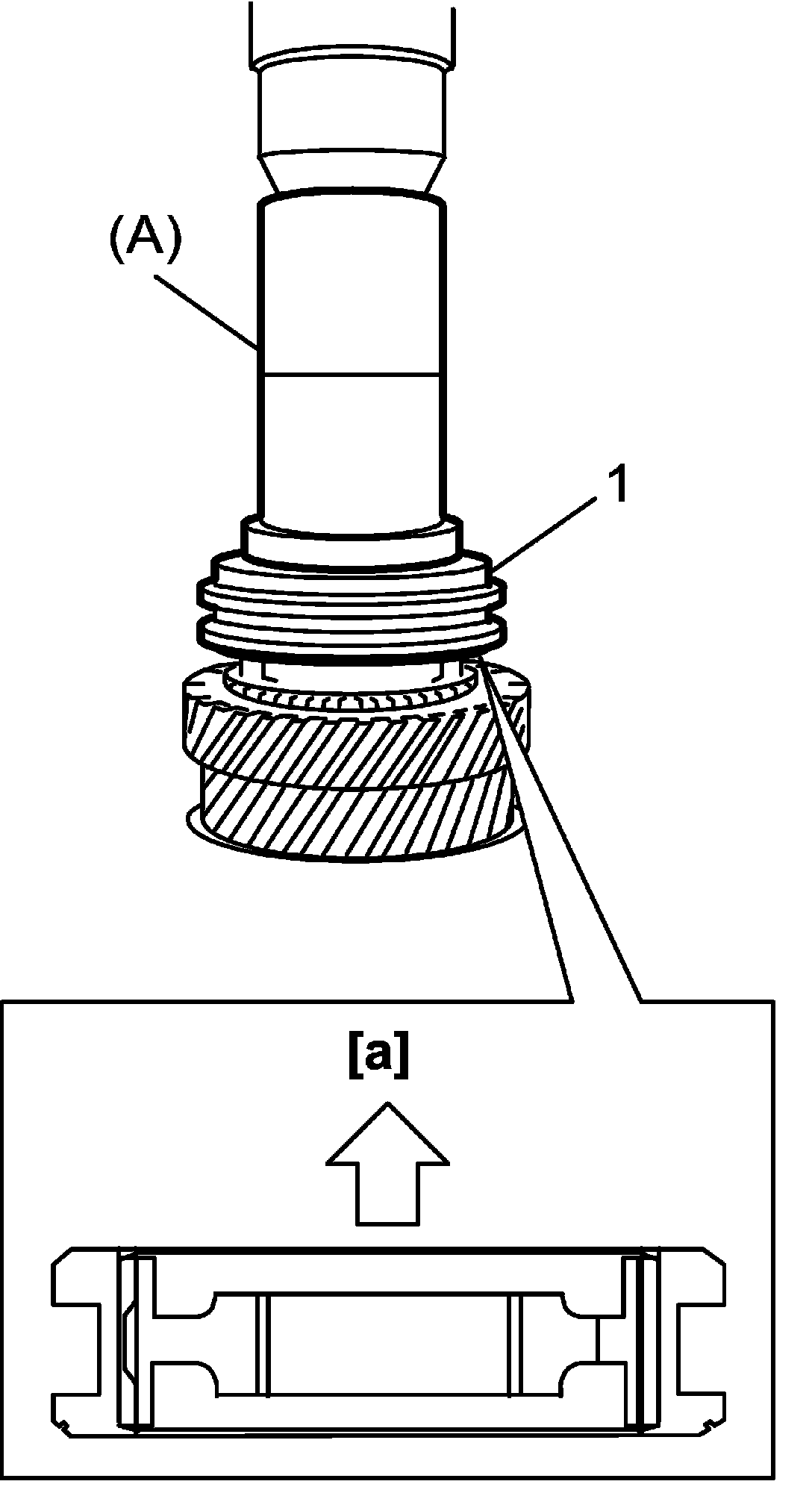 13) Select circlip (1) that will make thrust clearance "a" of bearing 0.1 mm (0.004 in) or less and install it.