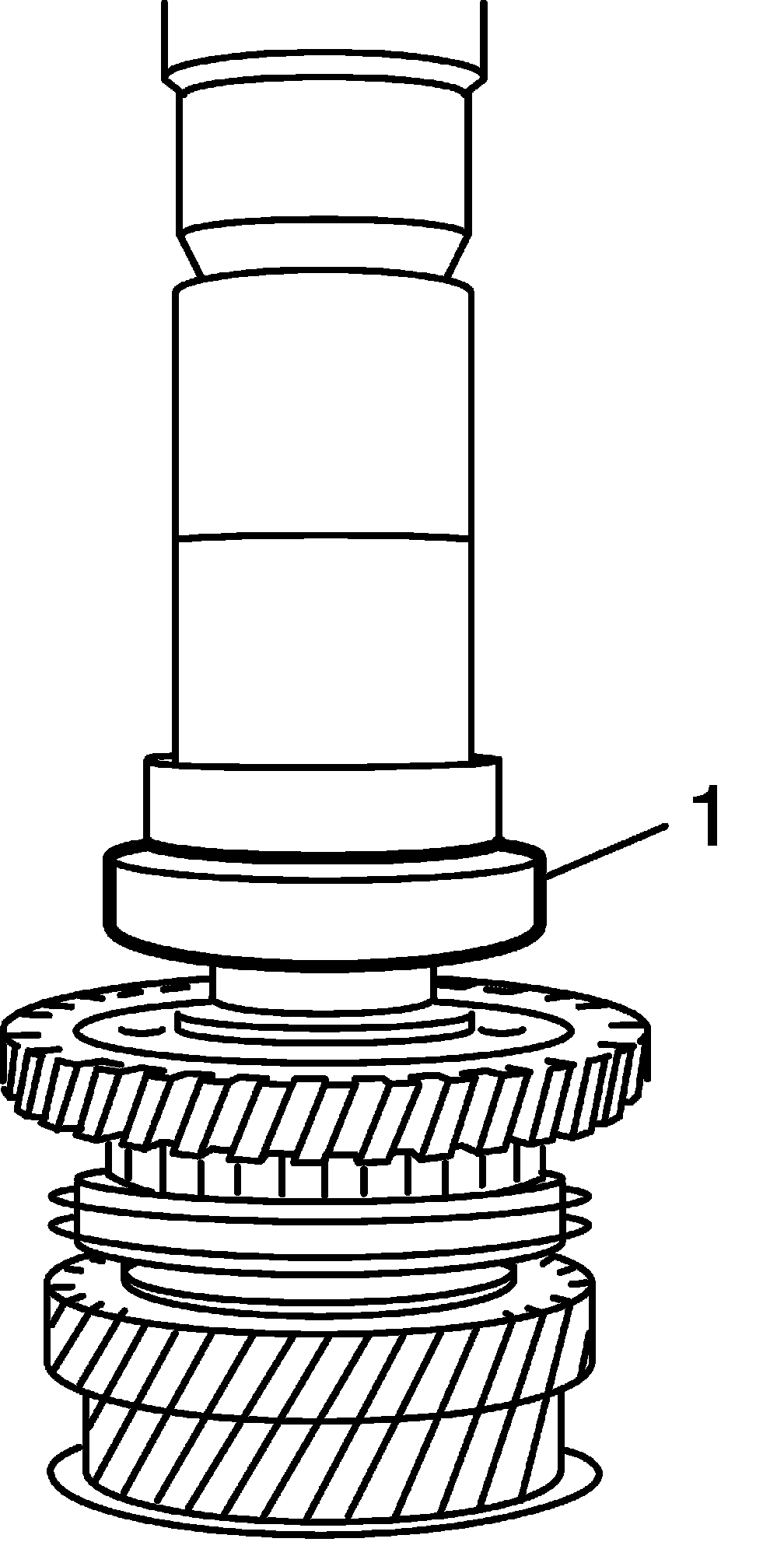 6) Drive in 5th gear spacer (1) using special tool and hydraulic press.