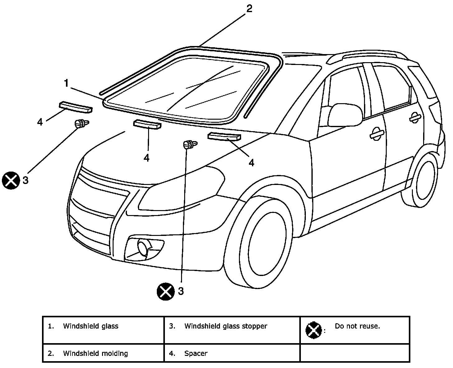 The windshield is installed by using a special type of adhesive (that is, one component urethane adhesive used with primer). For the windshield replacement, it is important to use an adhesive which provides sufficient adhesion strength and follow the proper procedure.