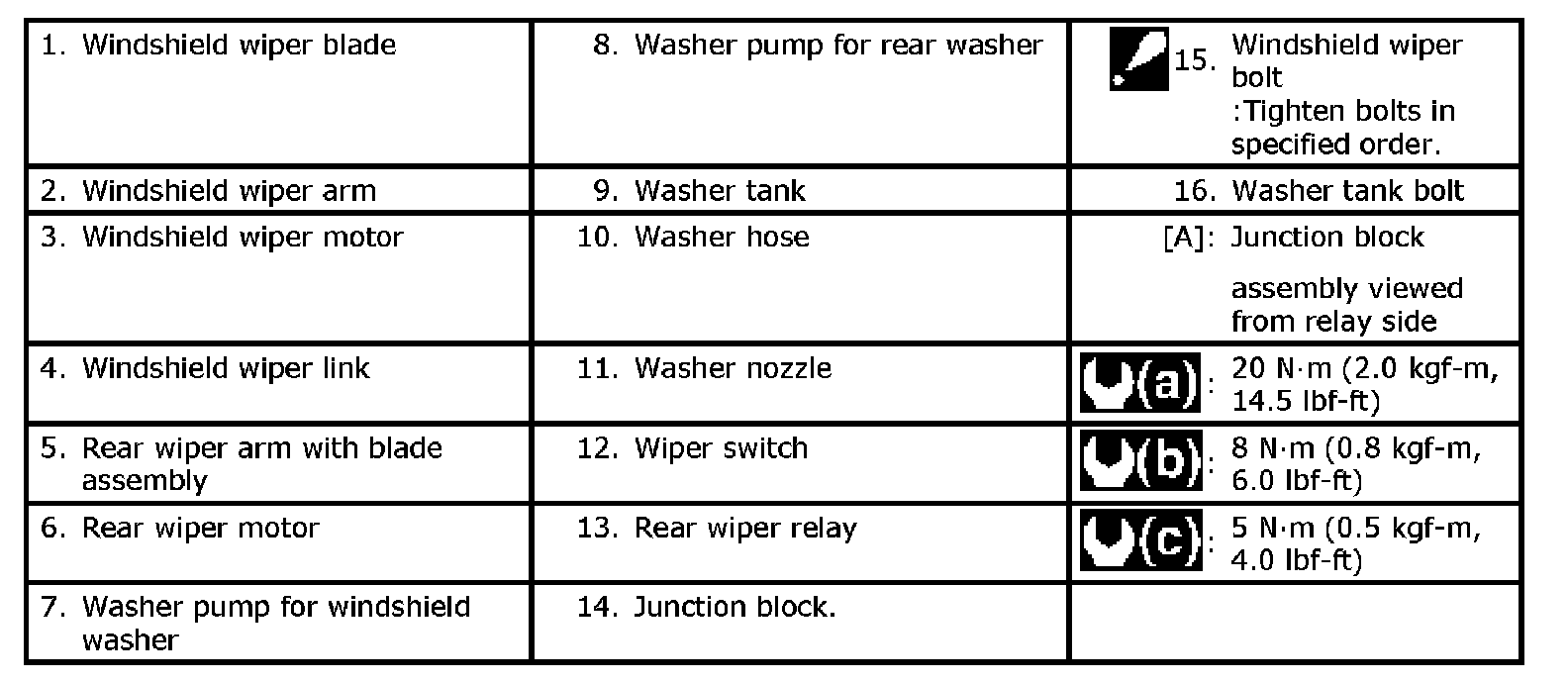 Wipers and Washers Components