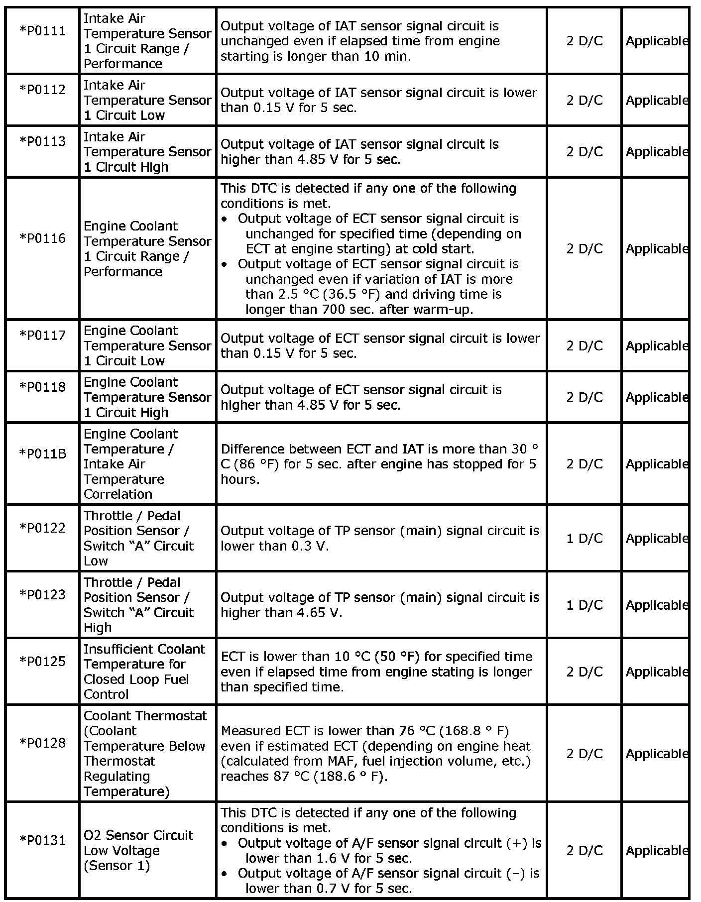 P0111-P0131: