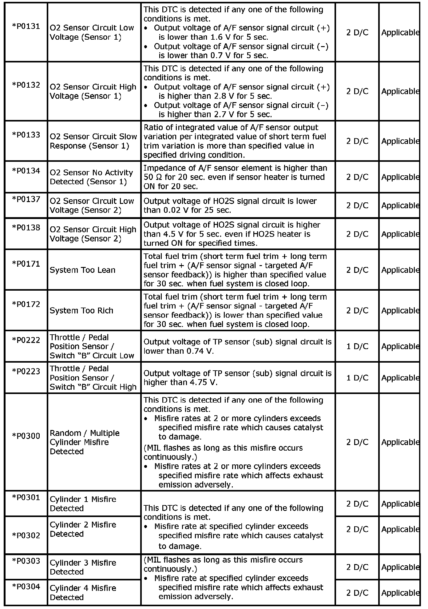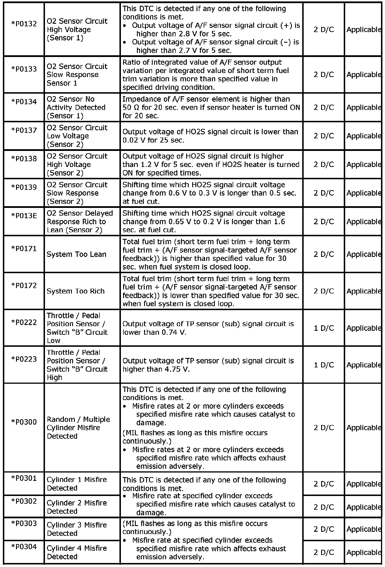P0132-P0304:
