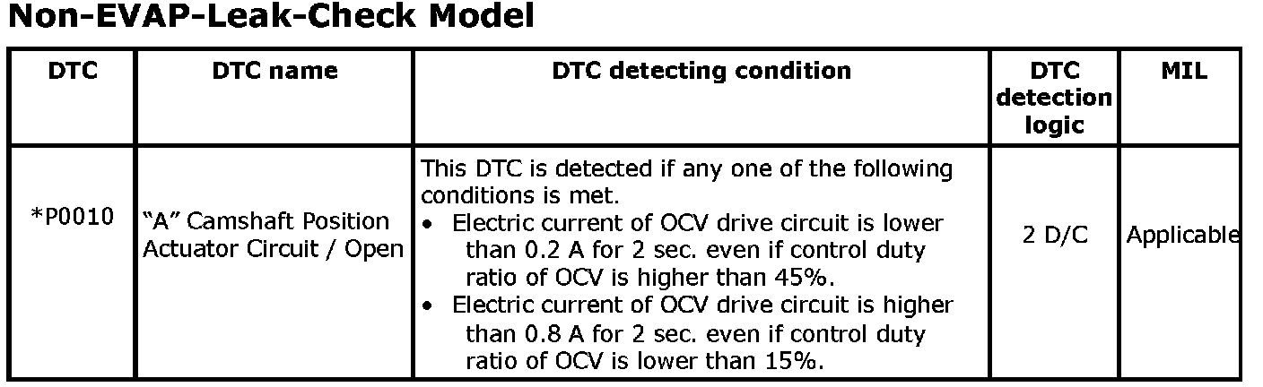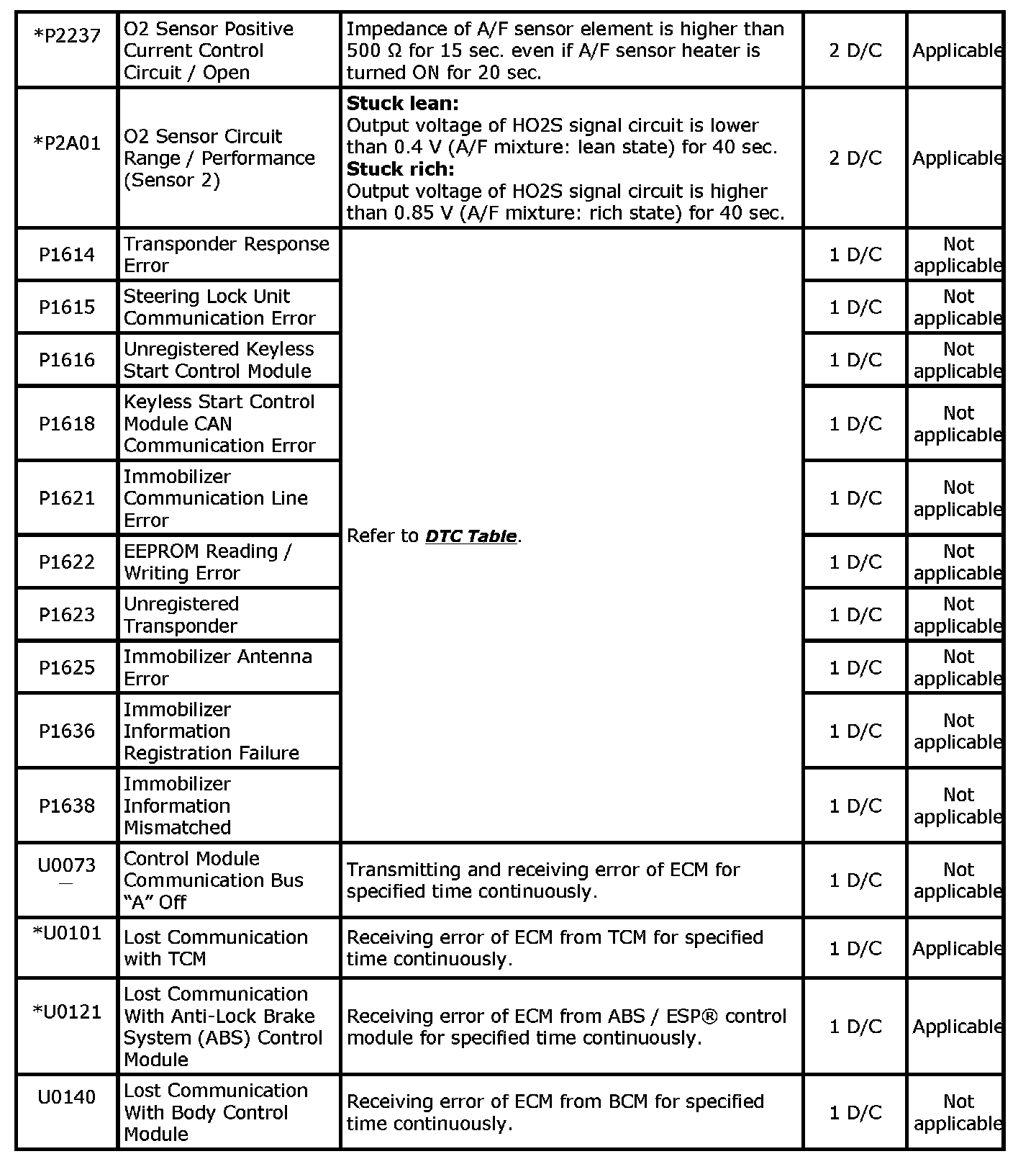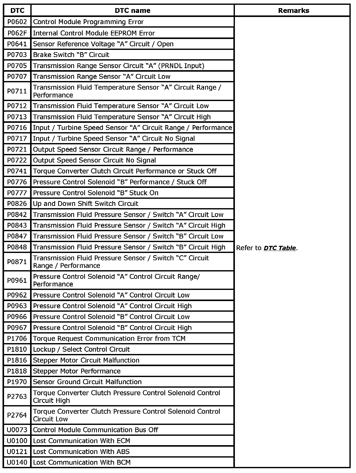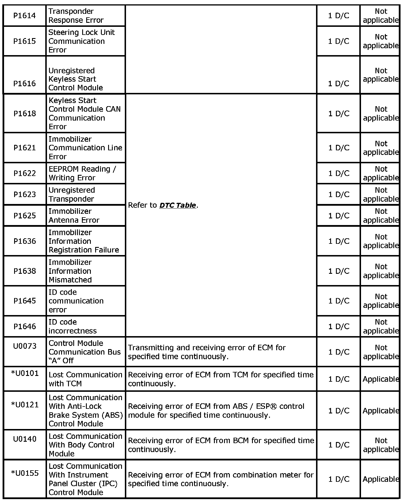 DTC TableNOTE: