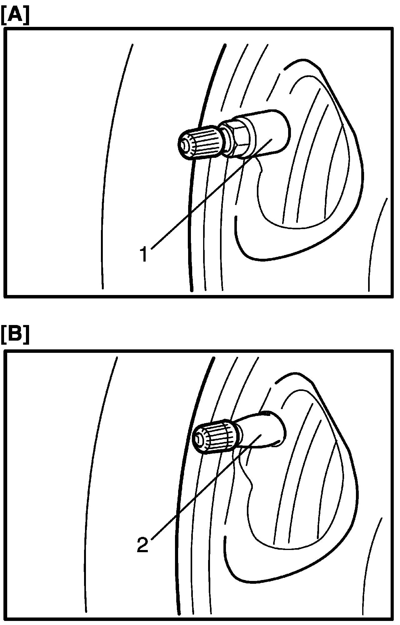 To see if the vehicle has TPMS, confirm the shape of air valve installed in wheel.