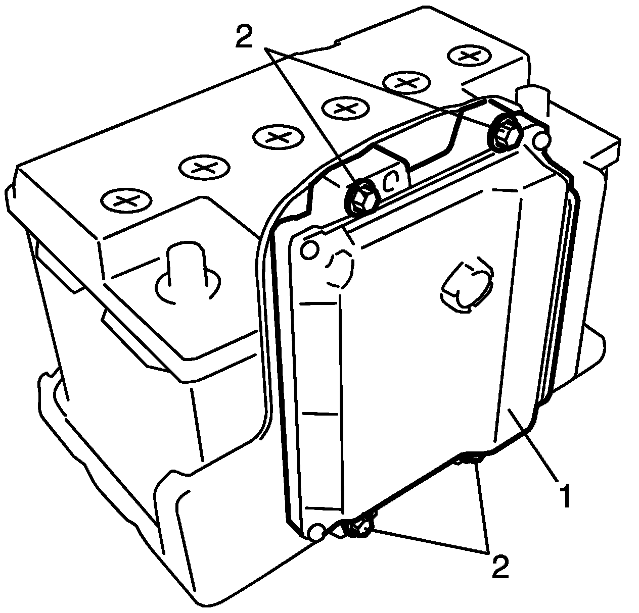 4. Remove ECM (1) from battery tray by removing its mounting nuts (2).