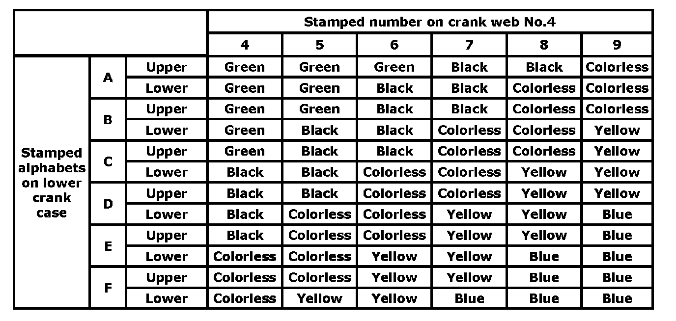 Main bearing cross - reference selection table (standard size)