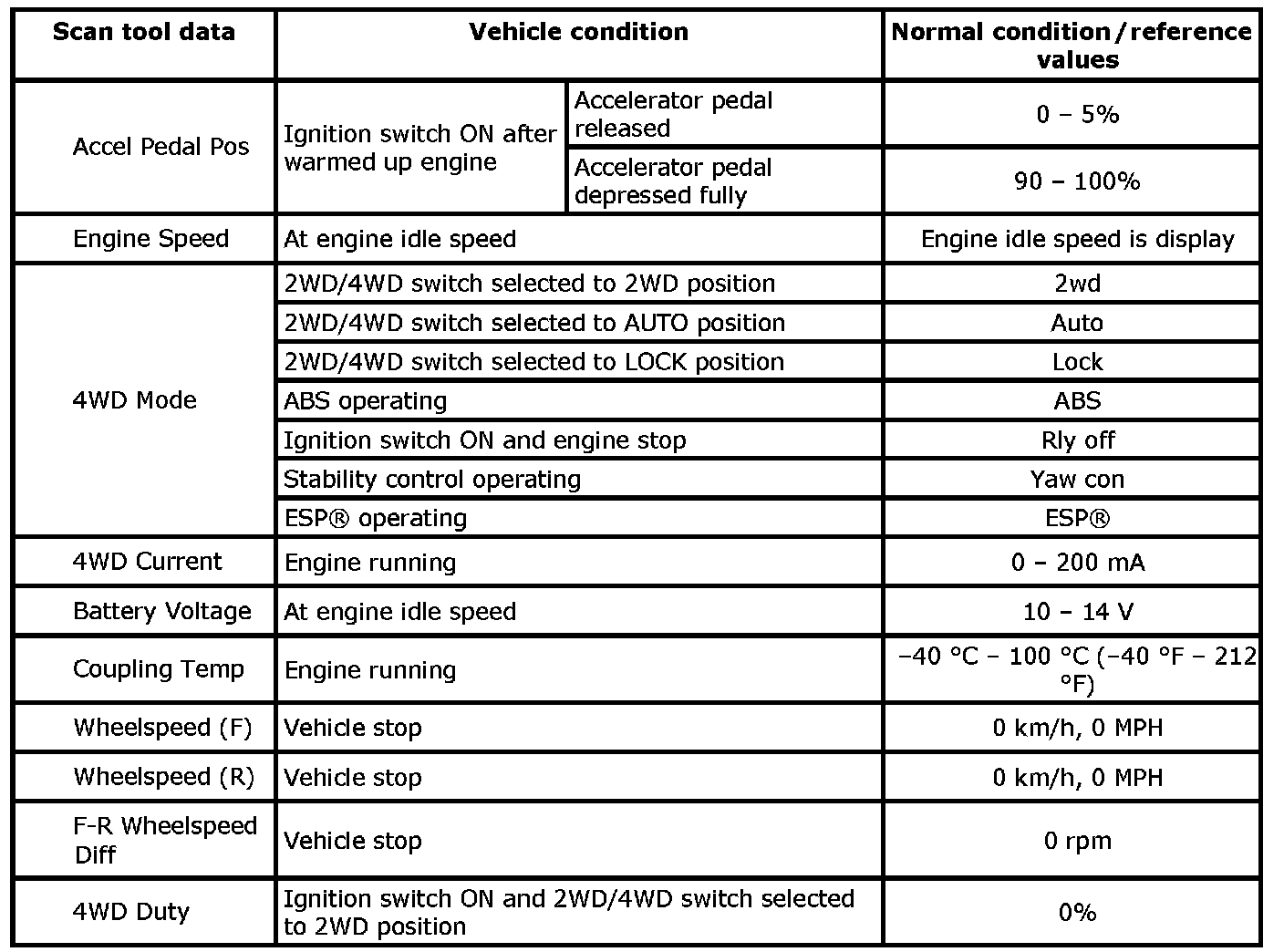 This parameter indicates 4WD mode according to 2WD/4WD switch signal status detected by 4WD control module.