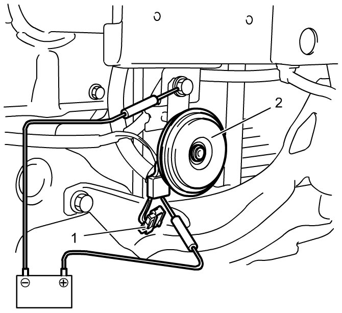 1) Disconnect horn connector (1) from horn (2).