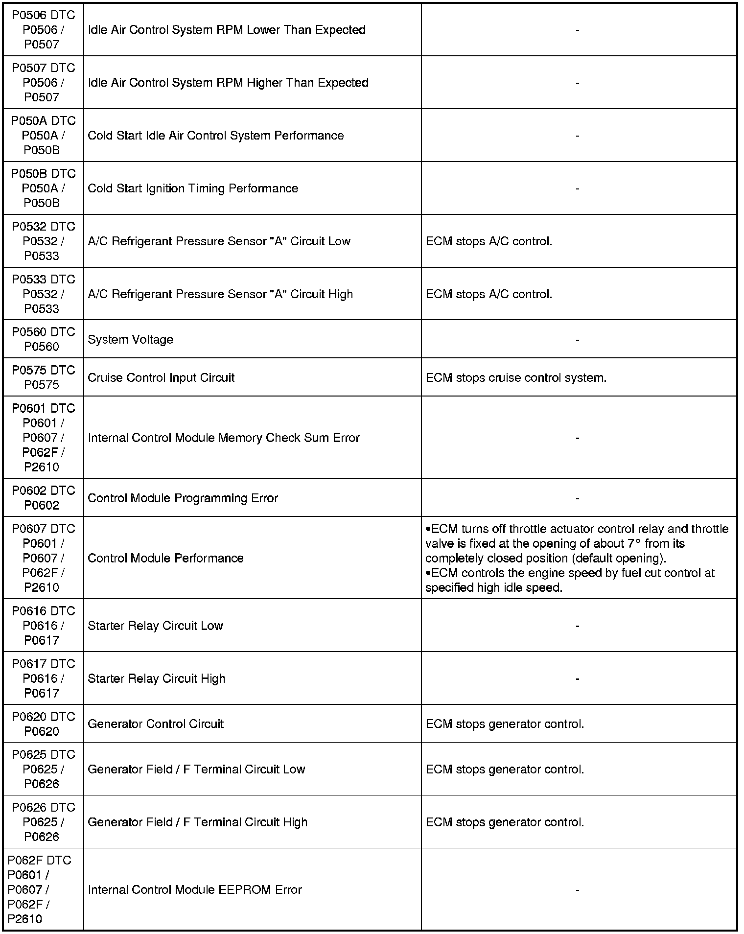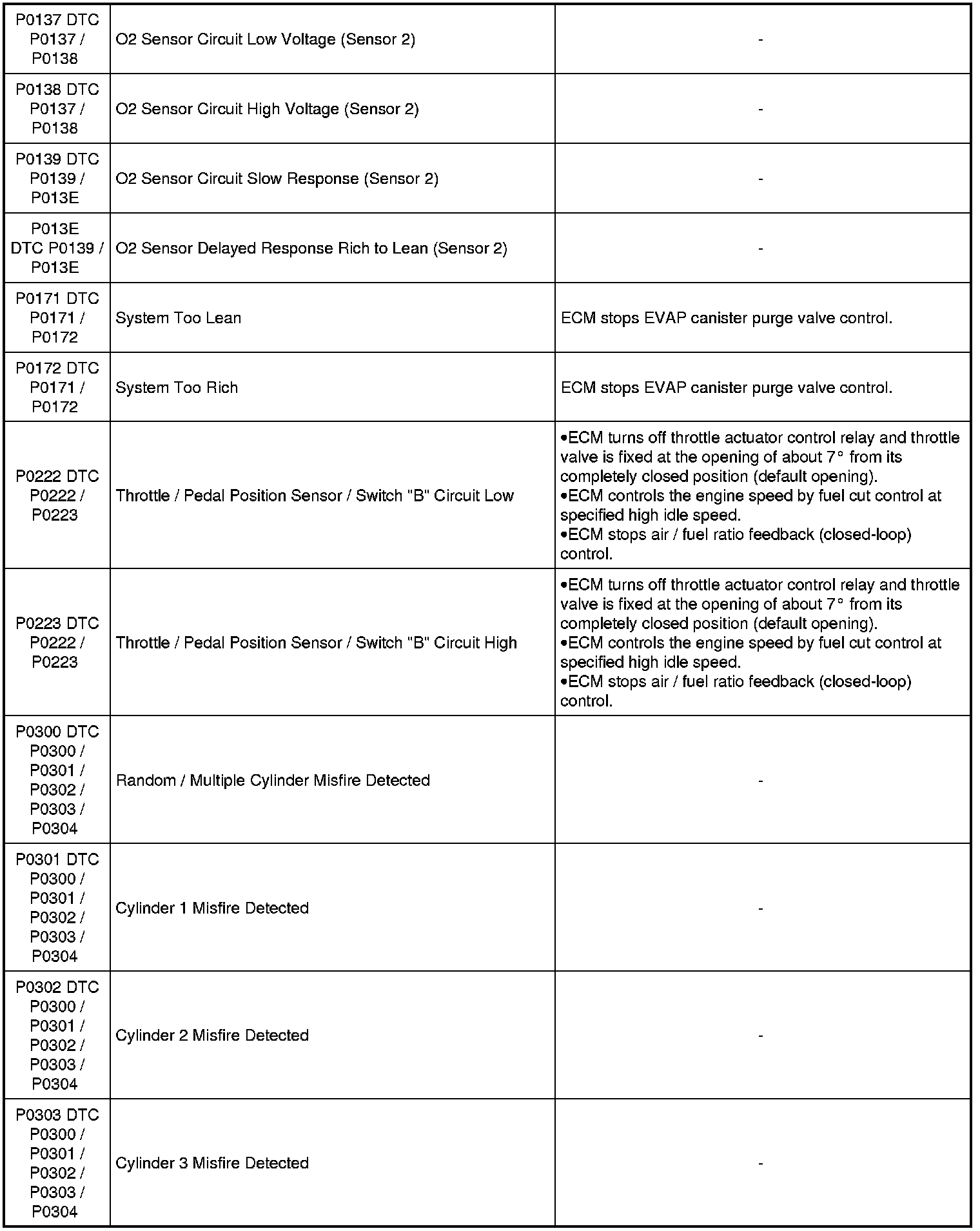 When any of the following DTCs are detected, ECM enters fail-safe mode as long as malfunction continues to exist but that mode is canceled when ECM detects normal condition.
