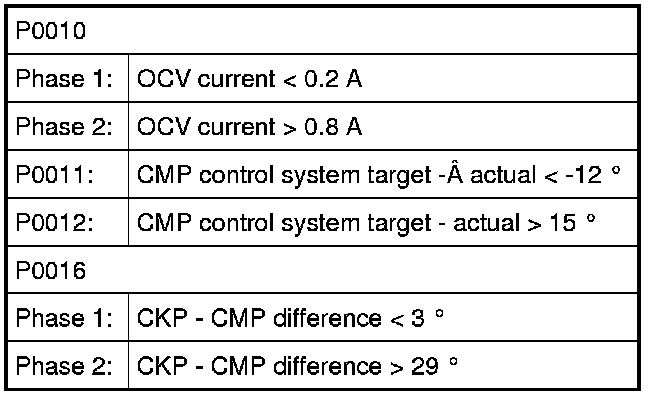 OBD System Description - Camshaft Position Control (VVT Variable Valve Timing) Monitor
