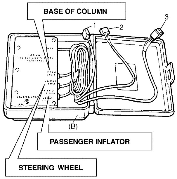 Use "STEERING WHEEL" connector instead of resistance load of all inflator modules and pretensioners.
