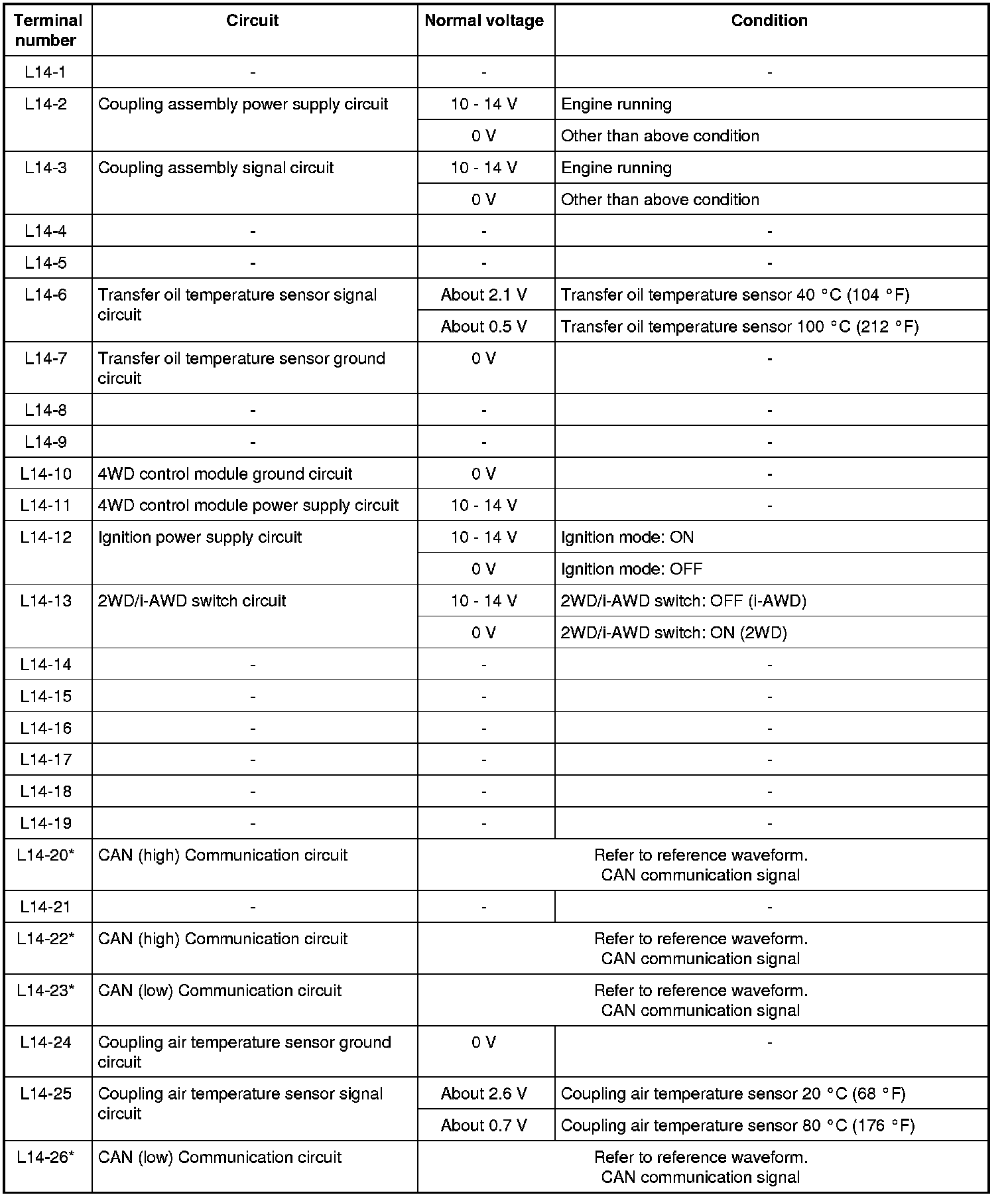 4WD control module and its circuits can be checked by measuring voltage and pulse signal at connector connected to 4WD control module.