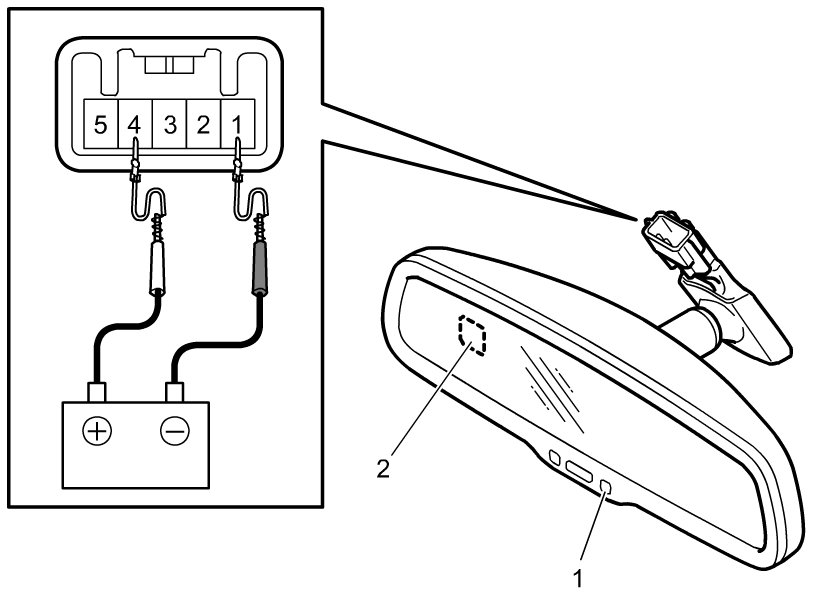 1) Connect positive and negative battery terminals to terminals "4" and "1" of rear view mirror connector respectively.