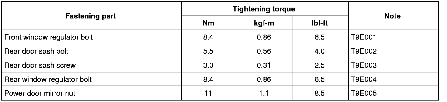 For the tightening torques of fasteners not specified in this section, refer to Fastener Information Fasteners Information.
