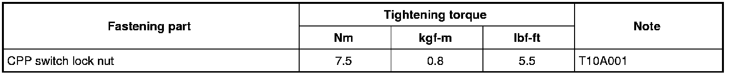 For the tightening torques of fasteners not specified in this section, refer to