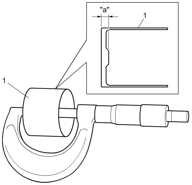 a) Using a micrometer, measure the thickness of the removed tappet (1).