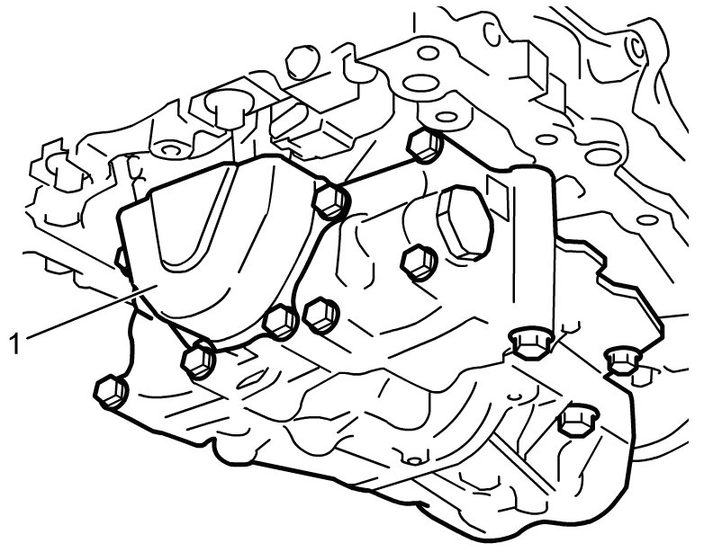 9) Remove special tool from oil pump assembly, and then install oil pump sprocket cover (1).