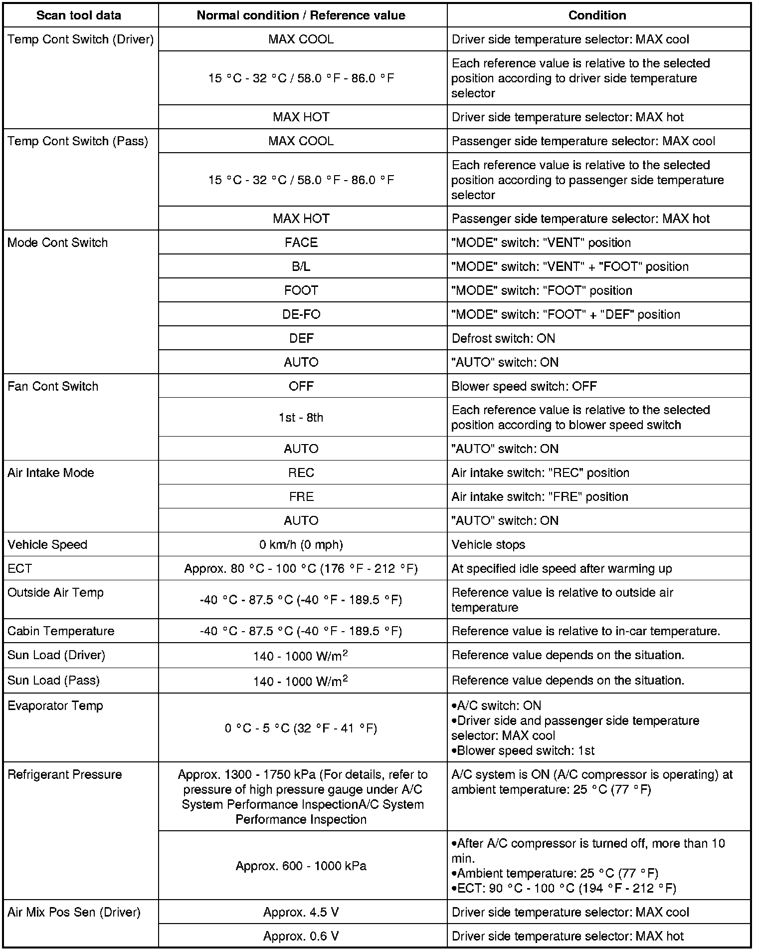 AIR MIX POS SEN (DRIVER) (Driver side temperature control actuator position sensor, V)