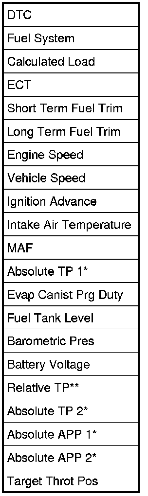 - For relative TP with asterisks (**) in above table, it indicates value calculated by formula ((output voltage - output voltage at closed throttle position) / power supply voltage).