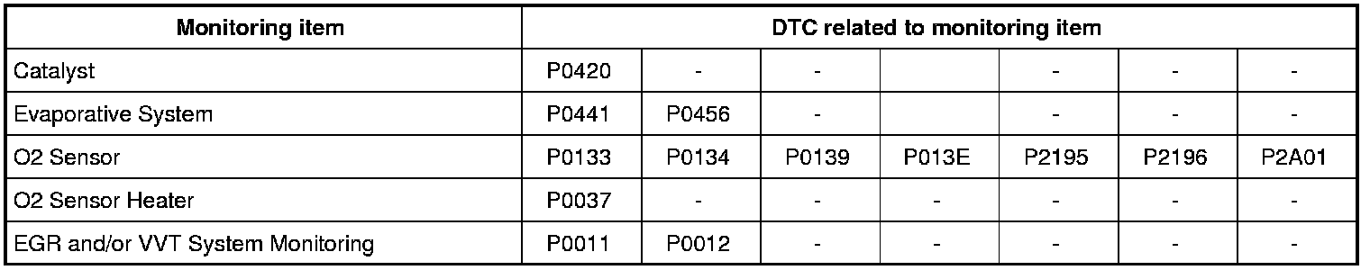 - By utilizing this system readiness test, it is possible to confirm that all DTC confirmation procedures for each system have been completed or are incomplete. For all DTCs related to each system, refer to the table below.