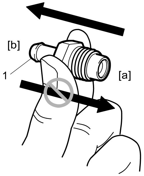 Install clean hose to valve and check that there is air flow when blowing air into hose from [a] to [b] and that there is no air flow when blowing air into hose from [b] to [a] as shown in figure.