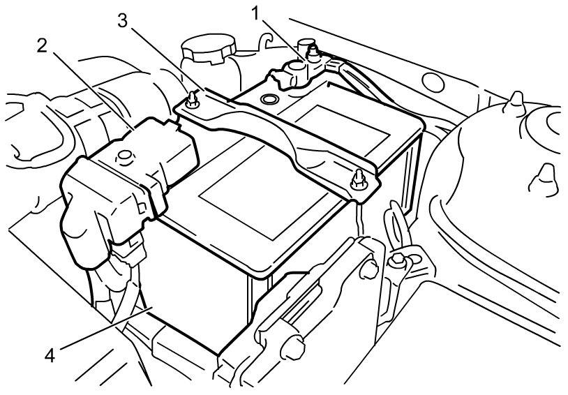 1) Disconnect negative (-) cable (1) at battery (4).