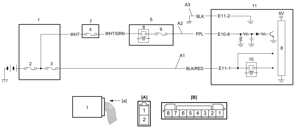 Check voltage between "E11-1" terminal and ground.