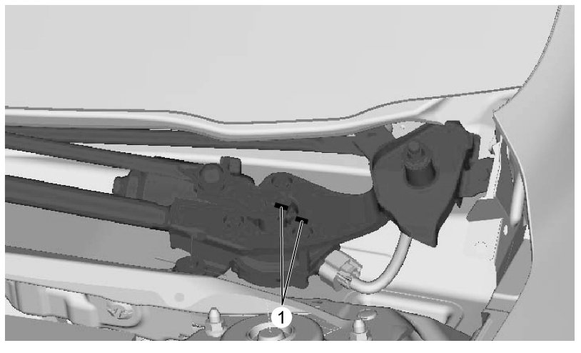 1) Make marks (1) as shown in figure with wiper motor stopped.