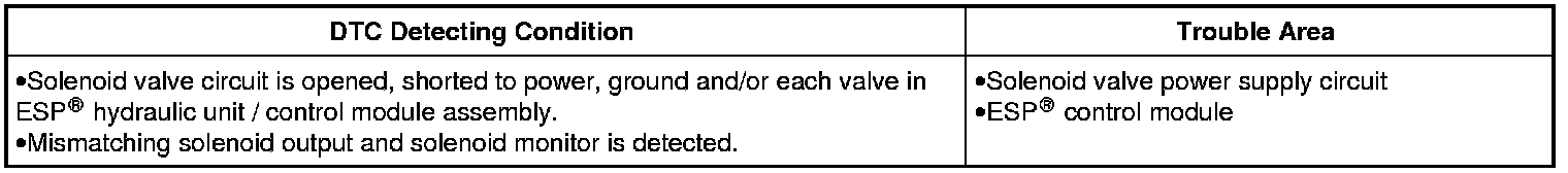 DTC C1041 / C1042 / C1043 / C1044 / C1045 / C1046 / C1051 / C1052 / C1053 / C1054 / C1055 / C1056: Inlet / Outlet / Cut / Suction Solenoid Valve Circuit Failure