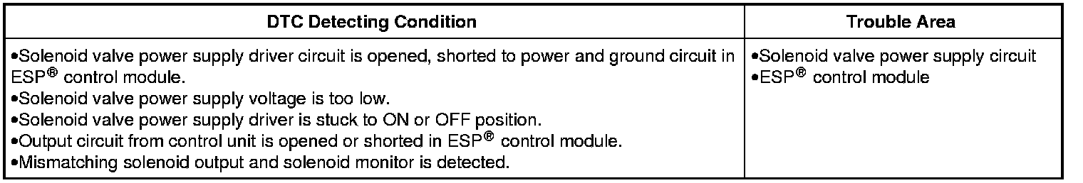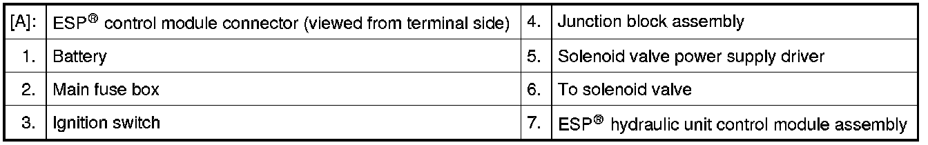 Check that ESP(R) hydraulic unit / control module assembly power supply circuit and ground circuit is in good condition referring to ESP Hydraulic Unit / Control Module Assembly Power Supply and Ground Circuit Check ESP(R) Hydraulic Unit / Control Module Assembly Power Supply and Ground Circuit Check.