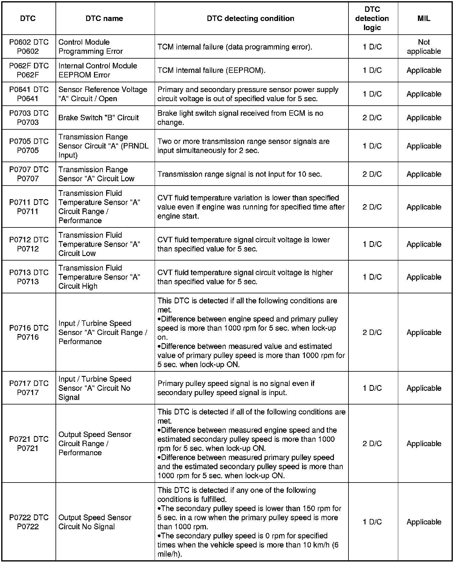 DTC Table