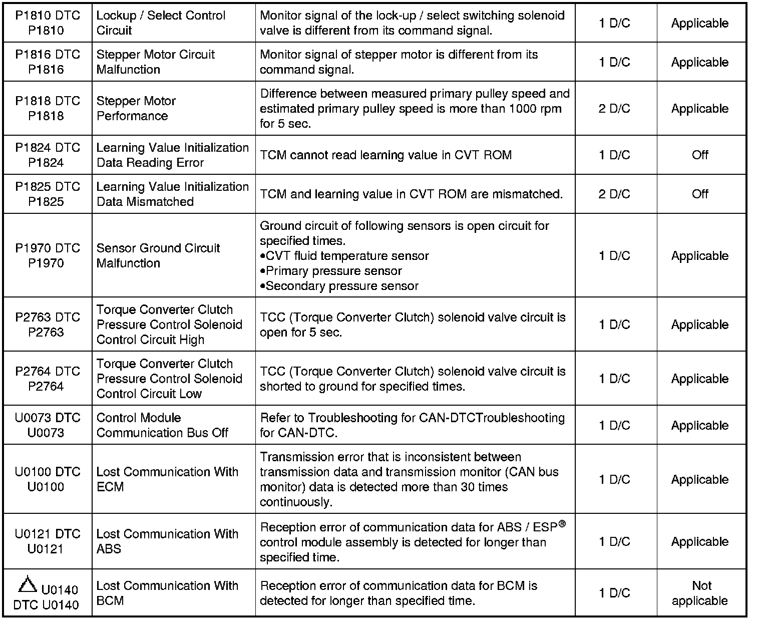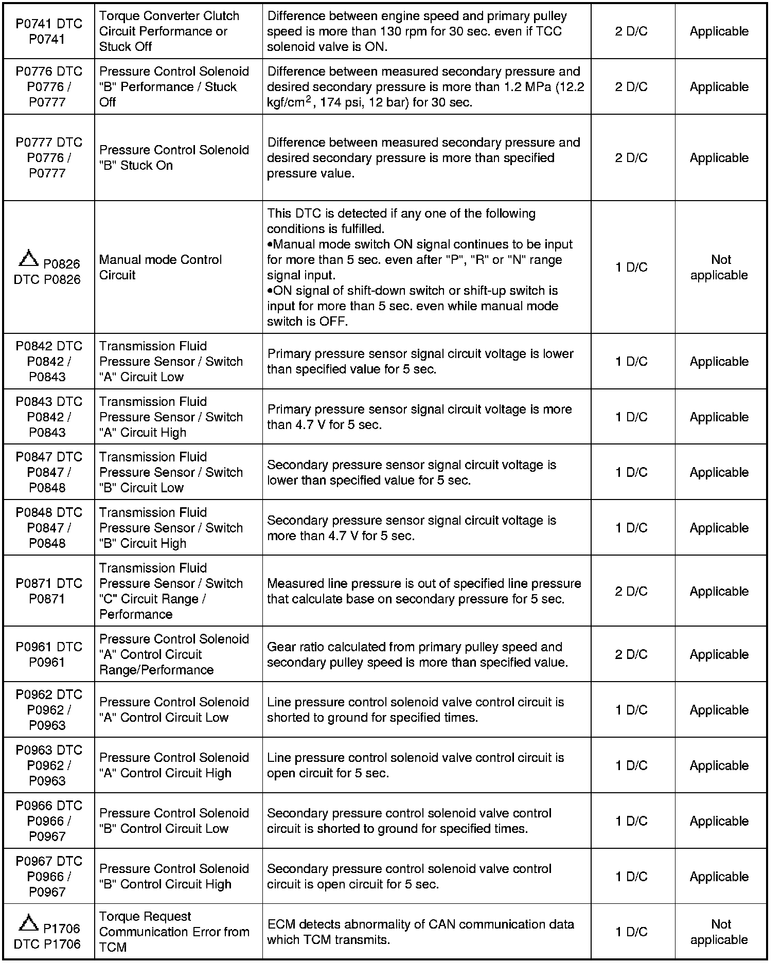 - With the CAN communication OBD generic scan tool, DTC No. with delta () mark in the following table can not be read.