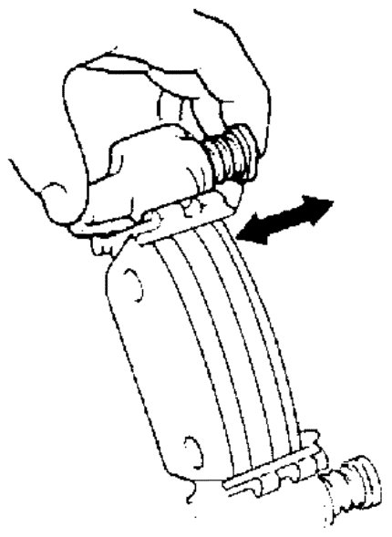 Before installing caliper to carrier, check for its smooth movement in thrust direction.