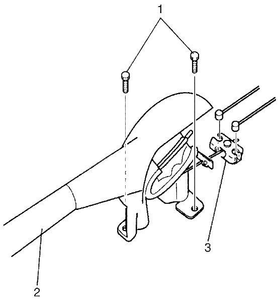 5) Remove parking brake lever bolts (1) and then remove parking brake lever assembly (2) with equalizer (3).