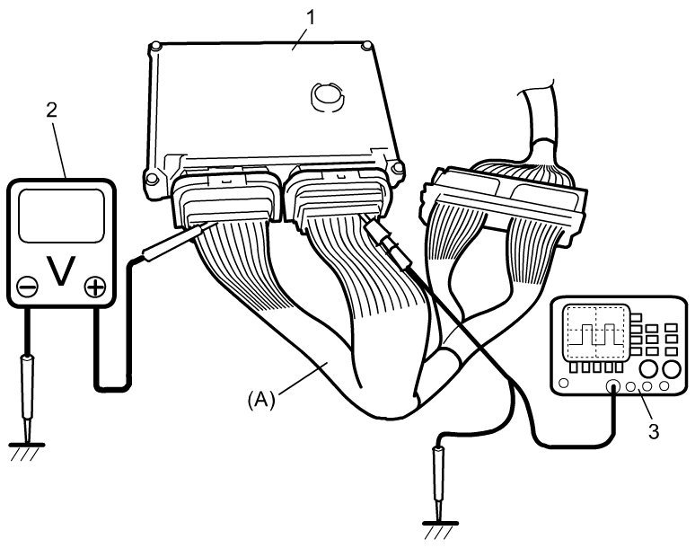 3) Check voltage and/or pulse signal using voltmeter (2) and oscilloscope (3).