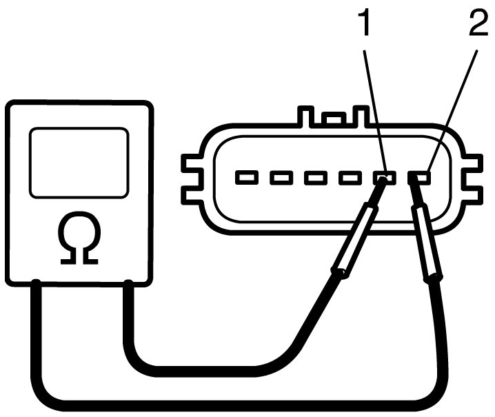 3) Measure resistance between "M1" terminal (1) and "M2" terminal (2) of electric throttle body assembly.