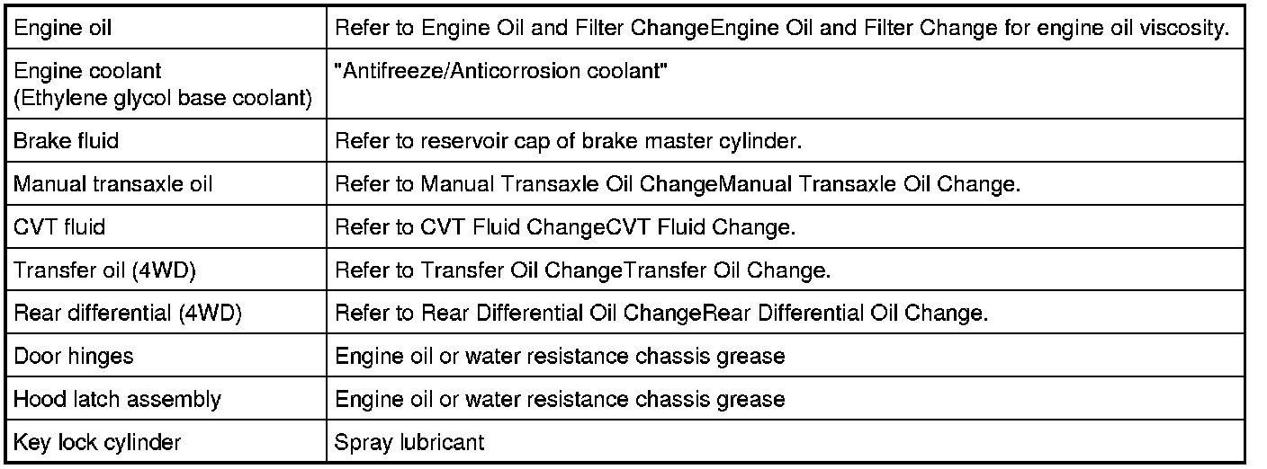 Recommended Fluids and Lubricants