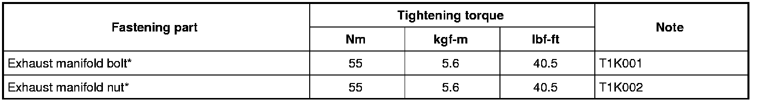 Tightening Torque Specifications