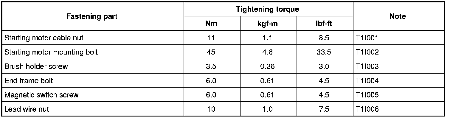 Tightening Torque Specifications