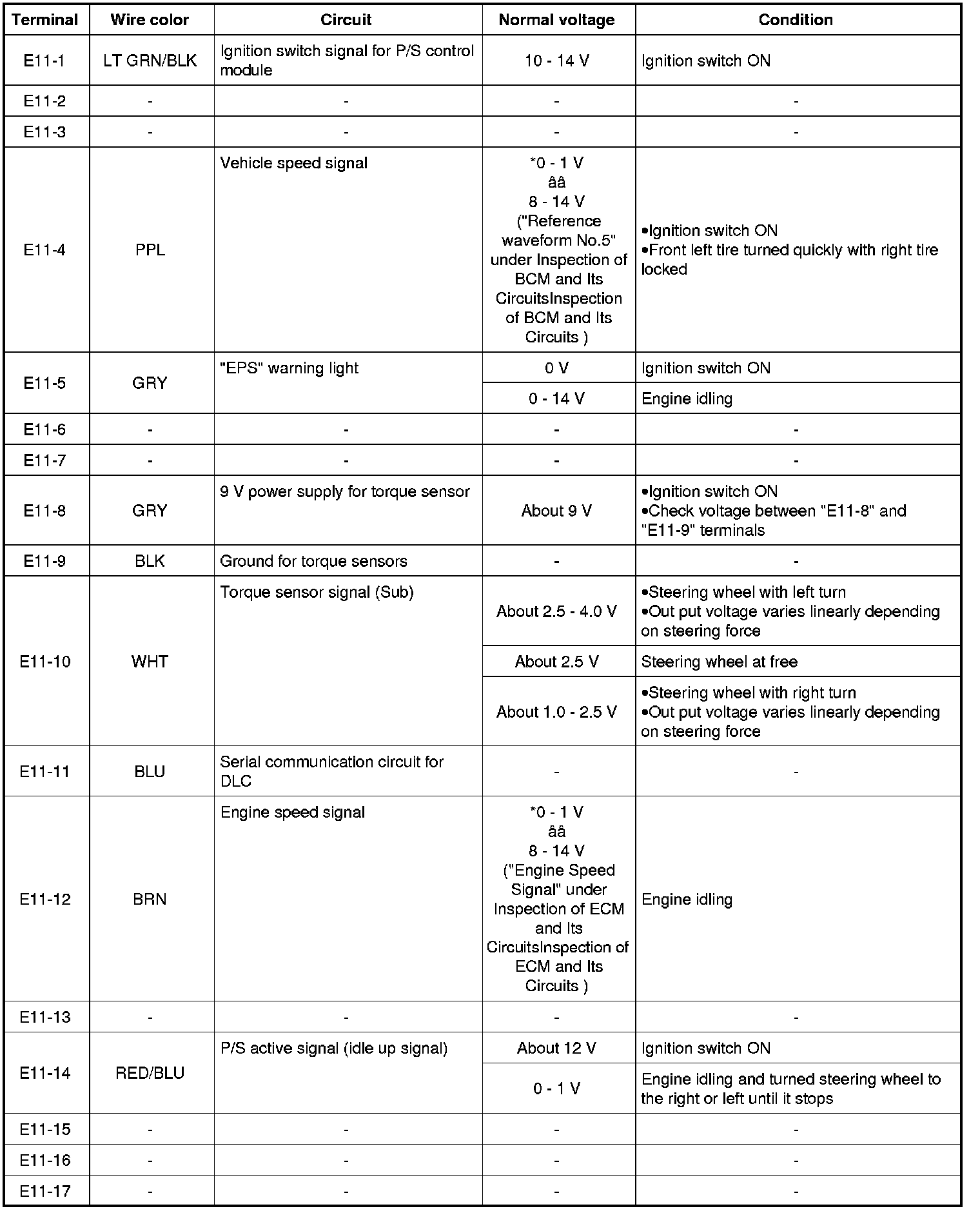As each terminal voltage is affected by the battery voltage, confirm if the battery voltage is 11 V or more when ignition switch is ON.