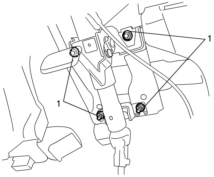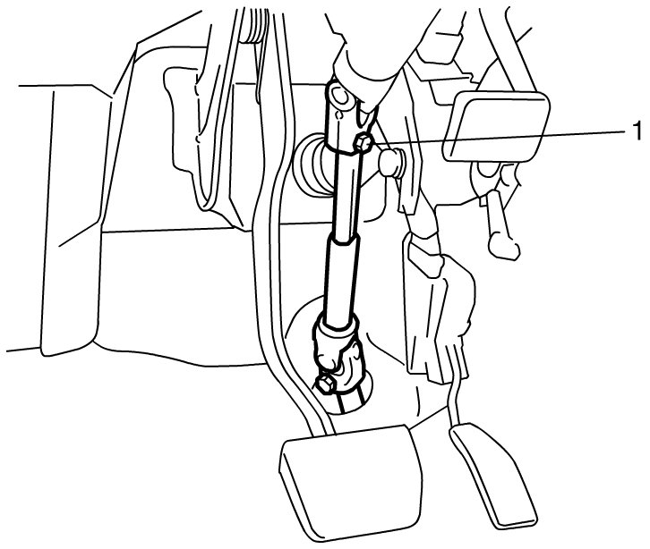 7) Remove steering column mounting nuts (1), and then remove steering column from vehicle.