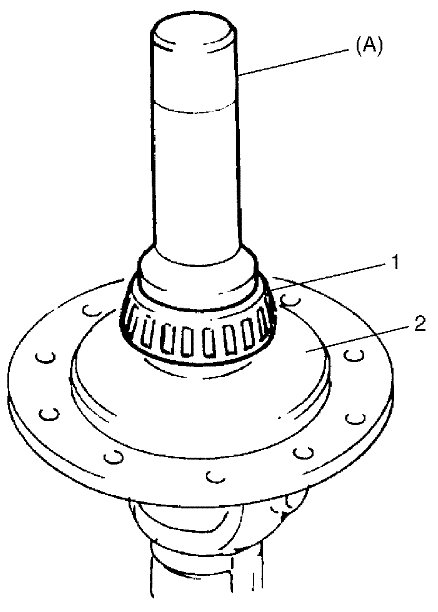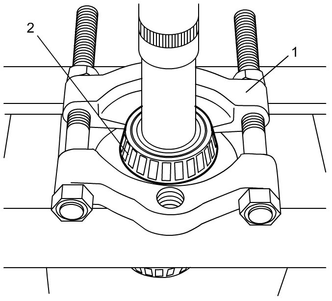 2) Remove left bearing (2) using puller (1) and hydraulic press.