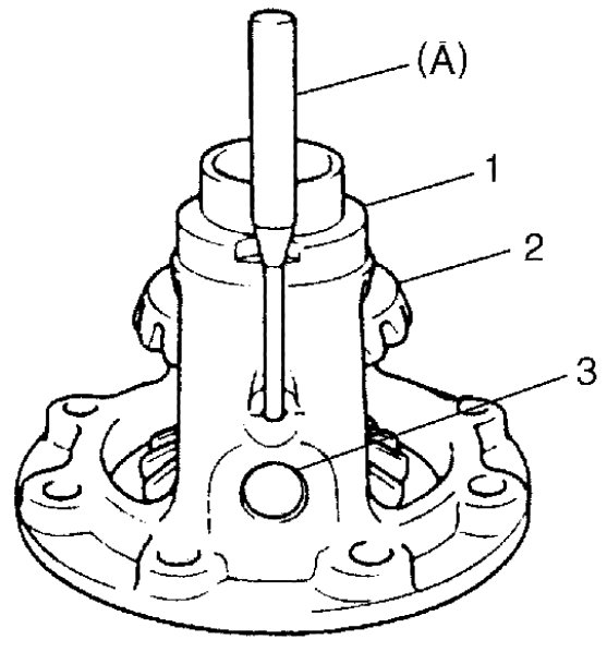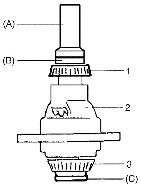 4) Drive out differential pinion shaft (3) pin using special tool and hammer and then disassemble components parts.