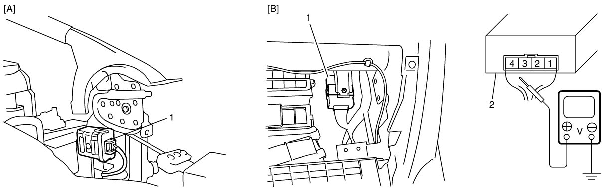 1) Check that the voltage between the following terminals and body ground are specifications under each conditions. If check result is not as specified, check applicable circuit for open or short. If circuit is normal, proceed to next step.