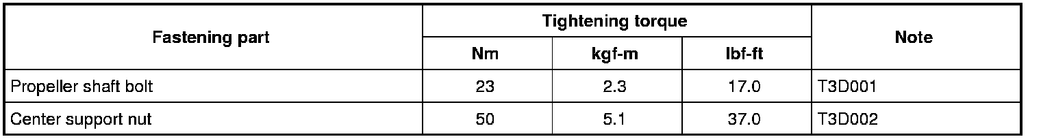 For the tightening torques of fasteners not specified in this section, refer to Fastener Information Fasteners Information.