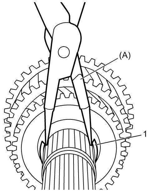 1) Remove circlip (1) using special tool and then remove washer.