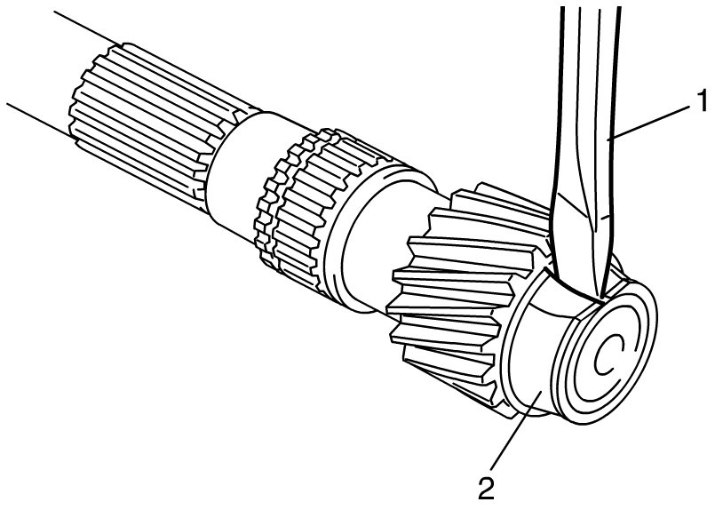 6) Drive in 2nd gear spacer (1) using special tool and hydraulic press.