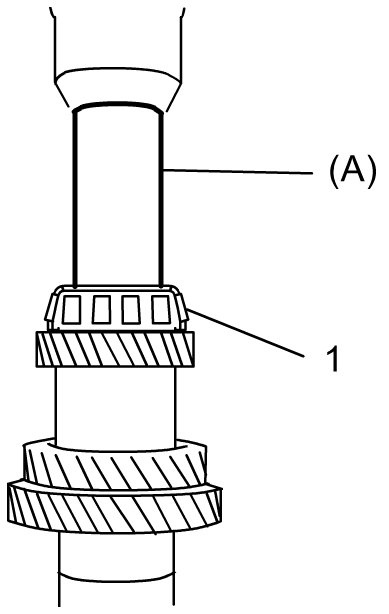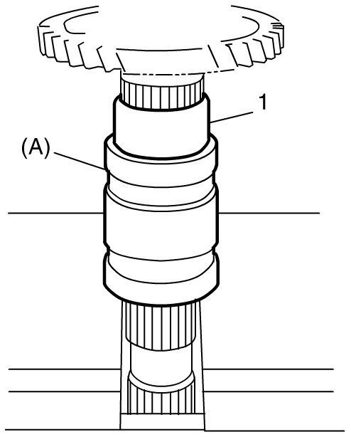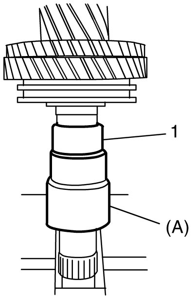 3) Drive in 1st gear spacer (1) using special tool and hydraulic press.