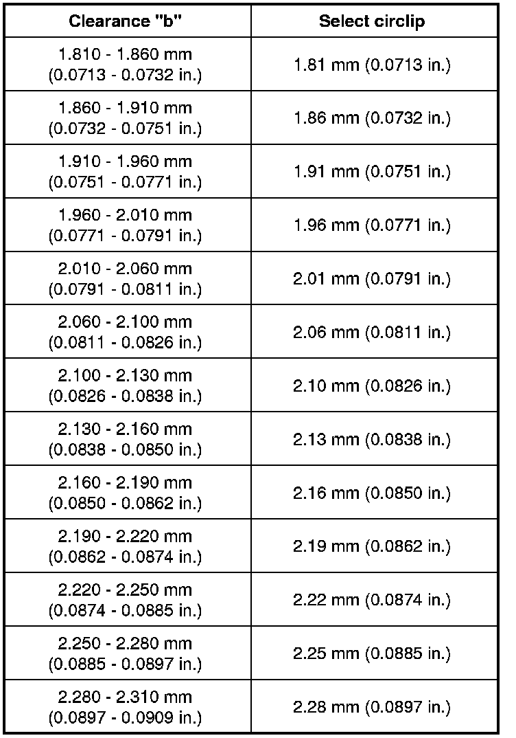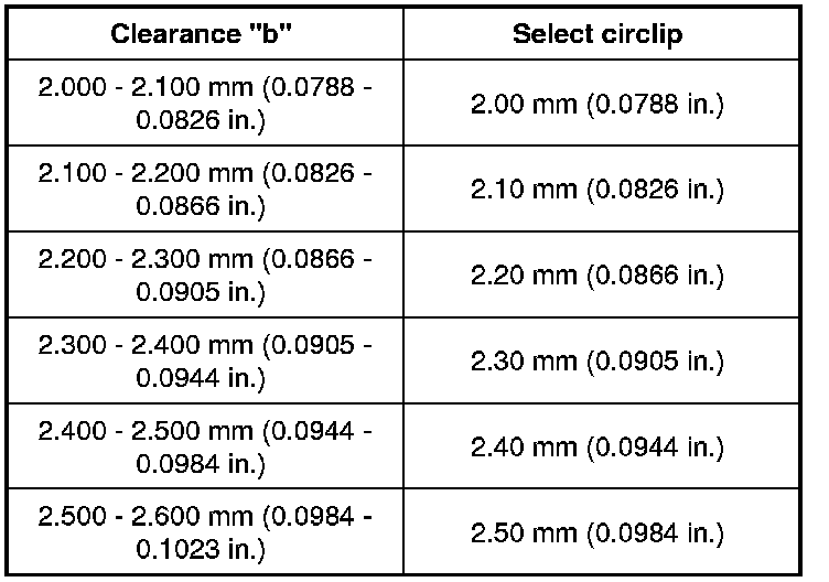 14) Select new circlip (1) that will make thrust clearance "a" of bearing 0.1 mm (0.0039 in) or less and install it.